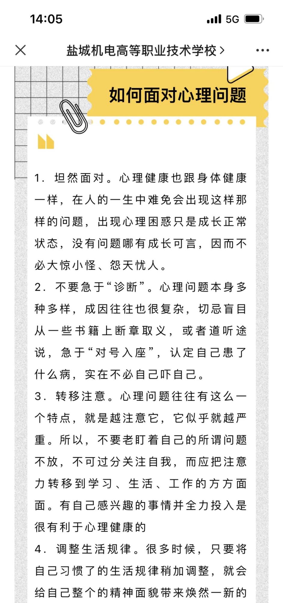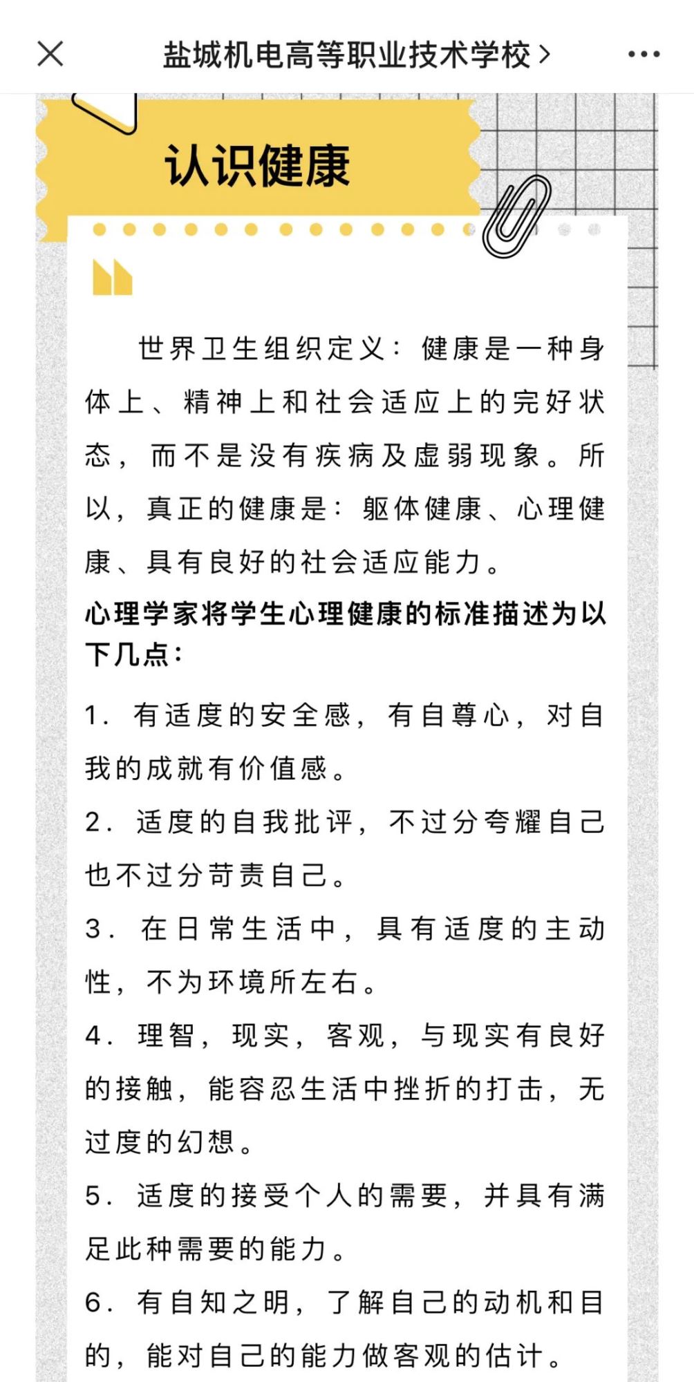面向全体学生,发放一篇健康小贴士,用文字来科普心理健康知识,帮助学生深刻理解心理健康的重要性,使他们对心理健康有全面、正确的认识与了解,砥砺前行,共创未来。