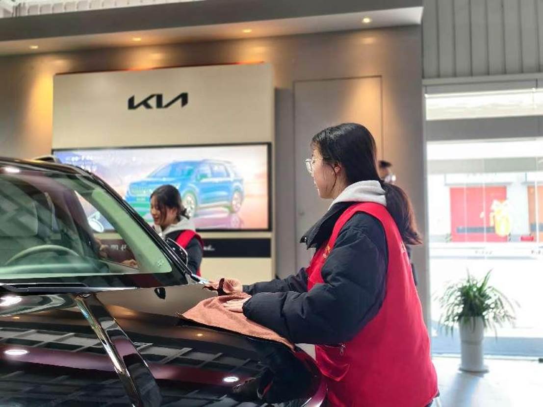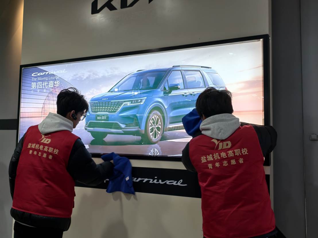 我校学生志愿者在工作人员的指导下,对厂区成品汽车展厅进行了全面清洁和整理。志愿者们积极参与广告牌美化、整车清洁及宣传台规整等工作,展现了专注细致的工作态度,赢得了工作人员的高度评价。那一抹抹“志愿红”,不仅彰显了我校青年学子坚定的理想信念,更体现了他们争做新时代追“锋”青年的精神风貌。