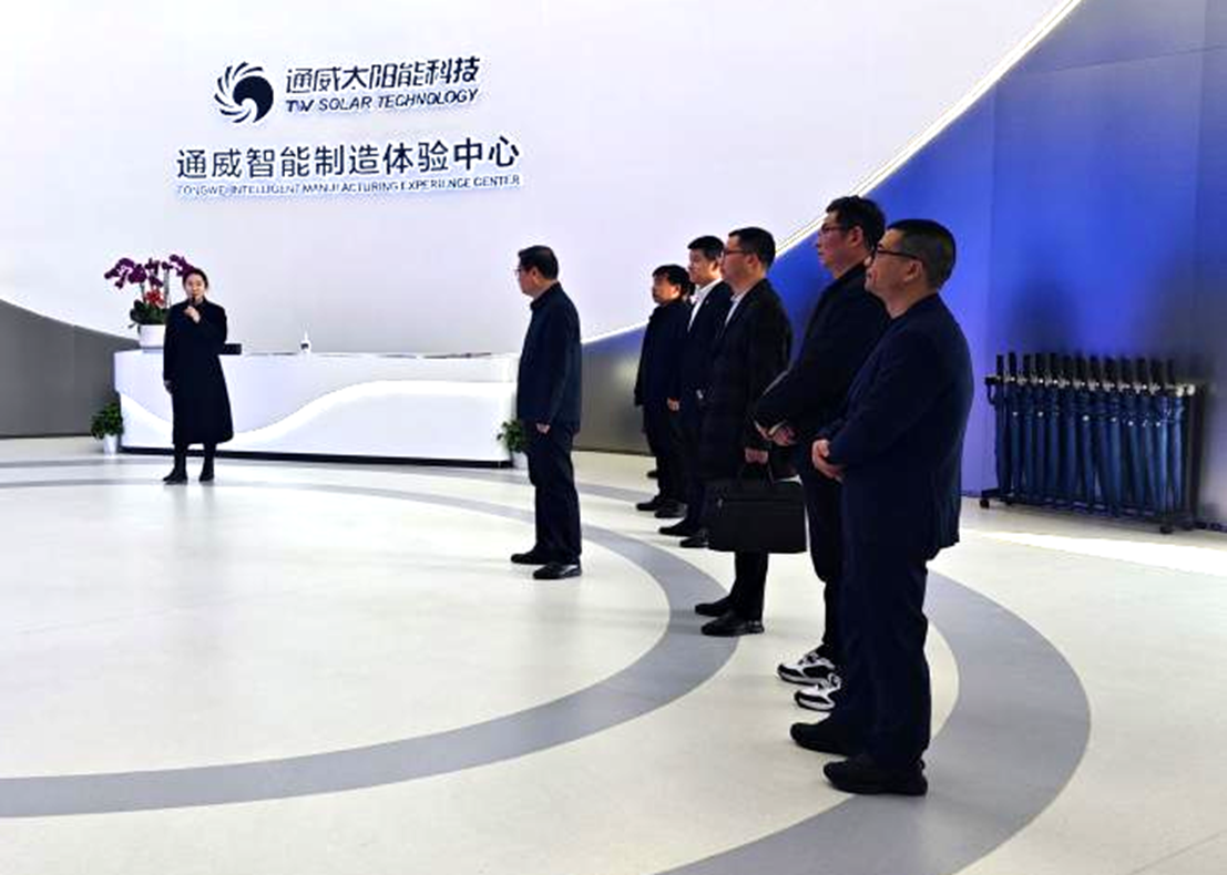 调研组先后参观了通威太阳能科技有限公司企业智能制造体验中心和生产车间,详细了解企业发展历程、产能布局及技术创新成果,并对全自动化智能生产线给予高度评价。