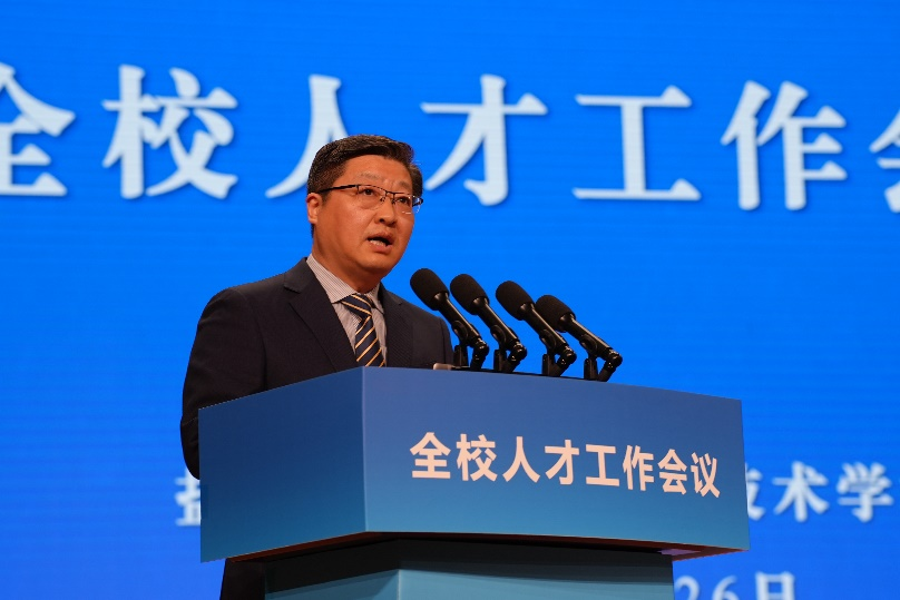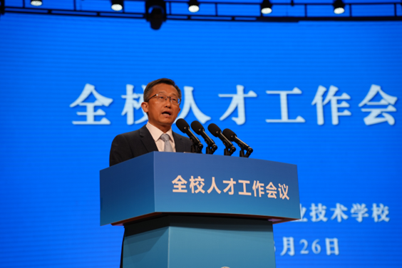 韩卫红代表学校致欢迎辞并和行业企业长期以来对我校事业发展的关心和支持,结合学校人才工作开展情况从三个方面提出了三点意见。一是要因势而谋,立足现有基础,巩固发展根基;二是要顺势而为,把握时代脉搏,回应发展之问;三是要乘势而上,锚定核心任务,厚植发展底色。同时,他希望全校上下要认真贯彻落实本次会议精神,以本次会议为新的起点,进一步凝聚共识,齐心协力,真抓实干,全力打造一批又一批高素质、高能力、高水平的人才队伍,为学校高质量发展提供强有力的人才支撑。讲话。他衷心感谢上级部门