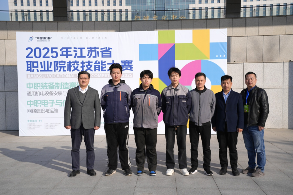 3月28日至30日,我校代表队(高旭(高职机电一体化2203班)、杨文俊(中职机电一体化2207班)和荣家伟(高职工业机器人2305班))在2025年江苏省职业院校技能大赛中职装备制造类"通用机电设备安装与调试"赛项中,凭借扎实的专业技能和稳定的临场发挥,在强手如林的竞争中脱颖而出,勇夺金牌,成功获得国赛选拔资格。