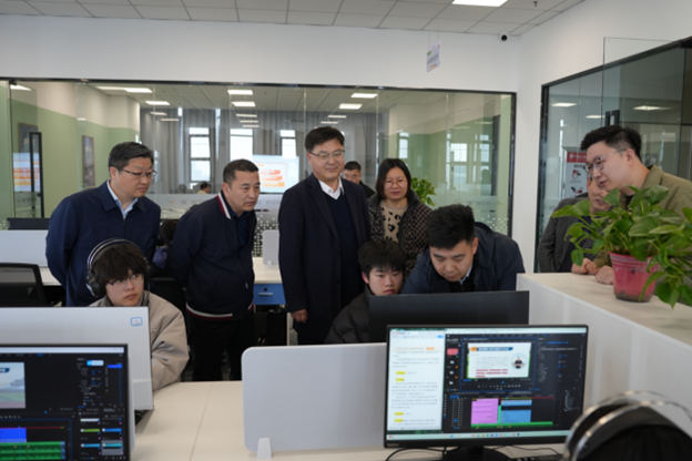 李忠玉一行还参观了我校智能制造系实训场所、信息传媒系网络搭建和运维实训基地、“邂逅光影”电影机馆和“数智逐梦”产教融合创新实践基地。