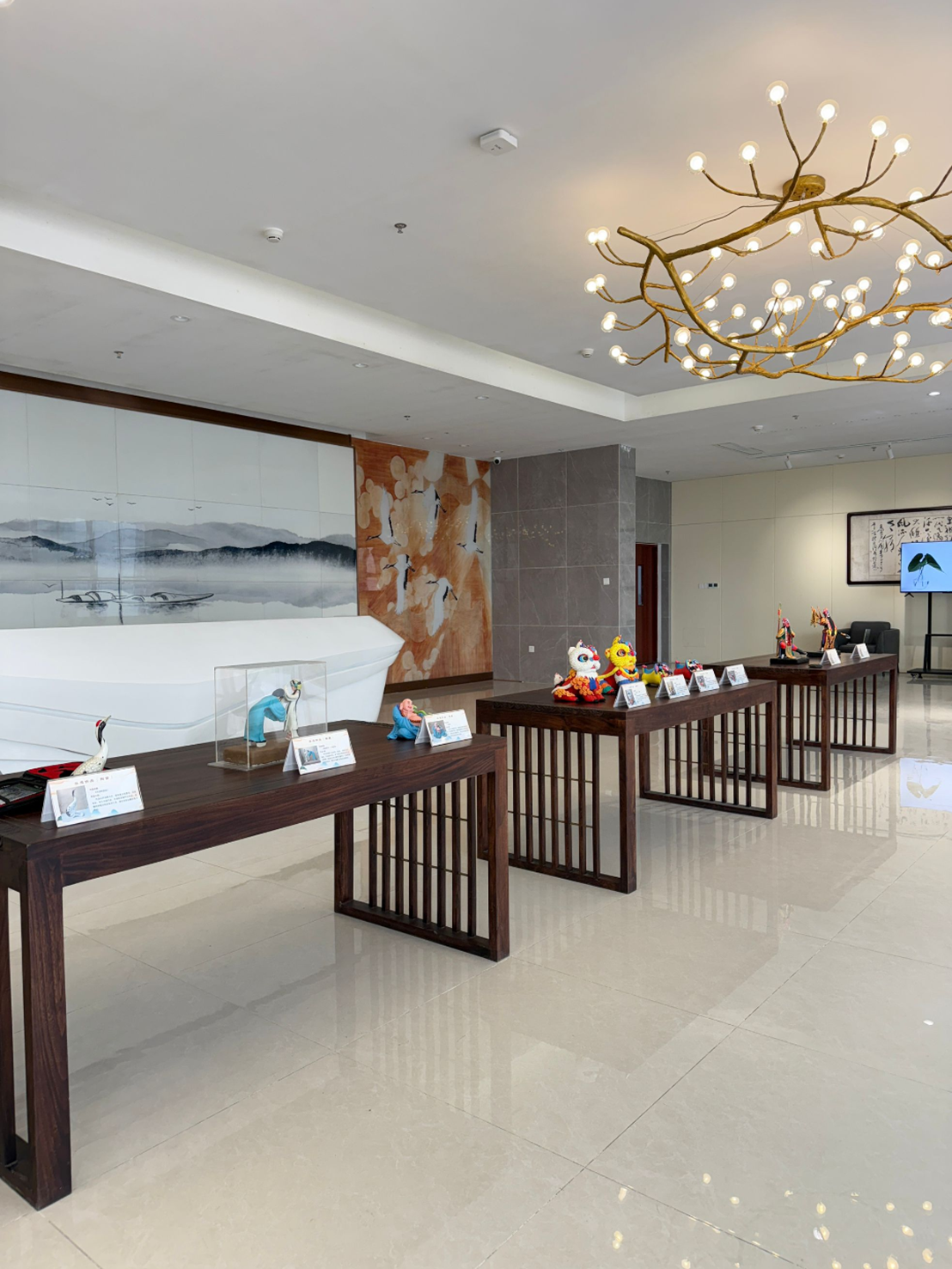 在面塑展览区,陈列着栩栩如生的面塑作品:憨态可掬的生肖动物、惟妙惟肖的戏曲人物、精巧细致的花卉果蔬,引得同学们连连赞叹。