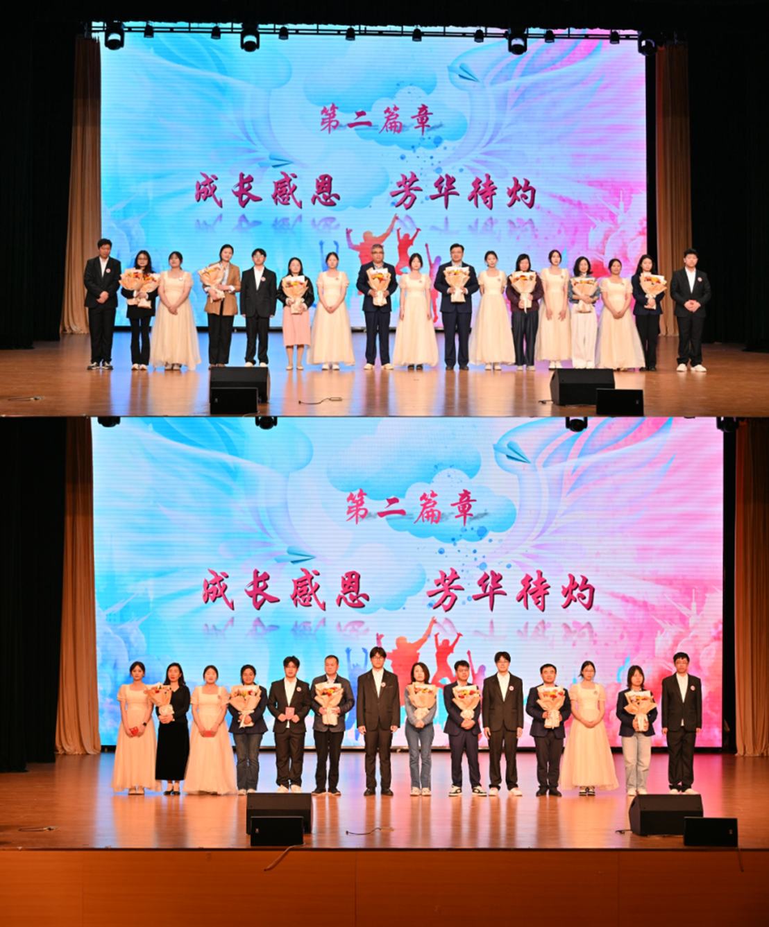 在悠扬的旋律中,学生代表手捧鲜花,向辛勤耕耘的班主任们深深鞠躬,用最诚挚的礼仪表达对师恩的感激。同学们以丰富多彩的文艺演出抒发感恩之情:深情款款的诗朗诵《十八岁的担当》道出了成长的责任与担当;活力四射的舞蹈《星星之火》展现了青春的蓬勃朝气;激情澎湃的歌舞《篇章》则描绘了追梦路上的壮志豪情。一个个精彩纷呈的节目,不仅展现了机电学子的多才多艺,更将现场气氛不断推向高潮,让整场成人礼充满了感动和热情。