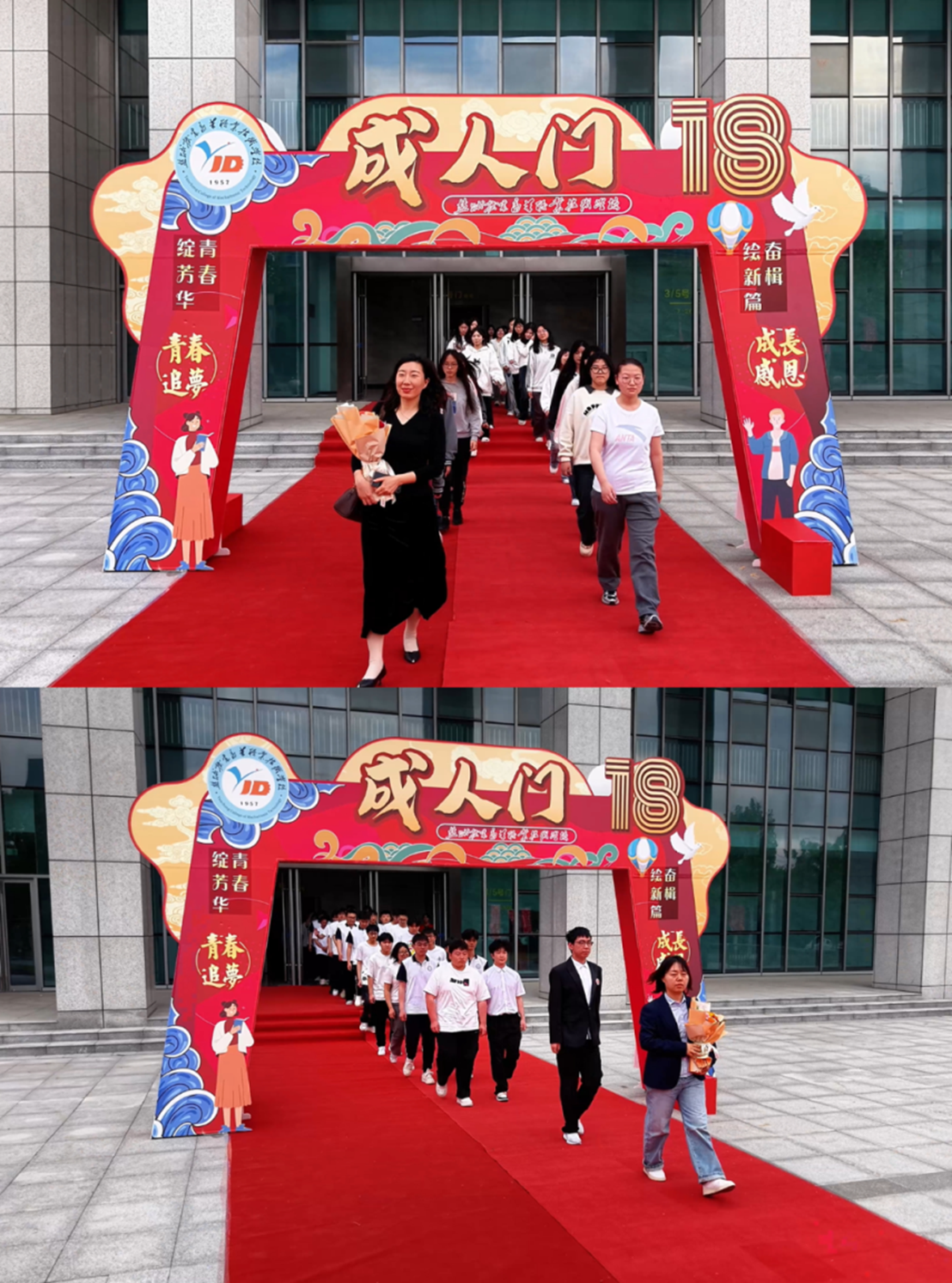 最后,在庄重的音乐声中,各班学生在班主任的带领下,携手迈过象征责任与蜕变的“成人门”。这道精心设计的拱门不仅是一个仪式性的通道,更是从青涩走向成熟的象征性界碑。同学们在特设的青春打卡台前驻足留念,用照片定格这一人生重要时刻。活动结束后,不少同学感慨道:“这场充满仪式感的成人礼,让我们真切体会到成长的责任与担当。十八岁不仅是年龄的数字,更意味着要学会独立思考和勇于担当。”他们表示,将以今天为新的起点,用更成熟的姿态和更坚定的信念,迎接未来的人生挑战。