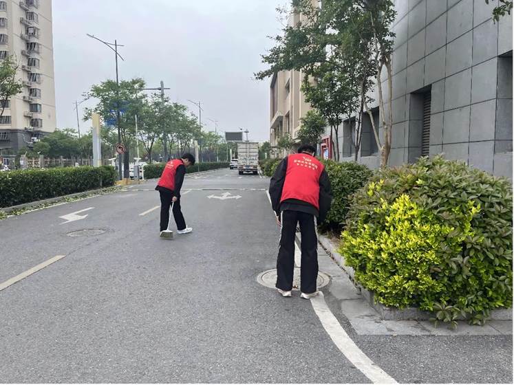 一组同学对社区公共区域展开“地毯式”清理。同学们细致清扫路面、捡拾绿化带垃圾、擦拭宣传栏和健身器材,尤其针对卫生死角进行重点整治;另一组同学则针对社区非机动车乱停乱放问题,将散落的电动车、自行车统一归位至停车区,并张贴文明停车提示标语。期间,同学们主动向居民宣传安全出行知识,劝导改正飞线充电等安全隐患行为。尽管天气炎热,但同学们热情不减,经过他们的劳动,社区面貌焕然一新,赢得广大居民连连称赞。