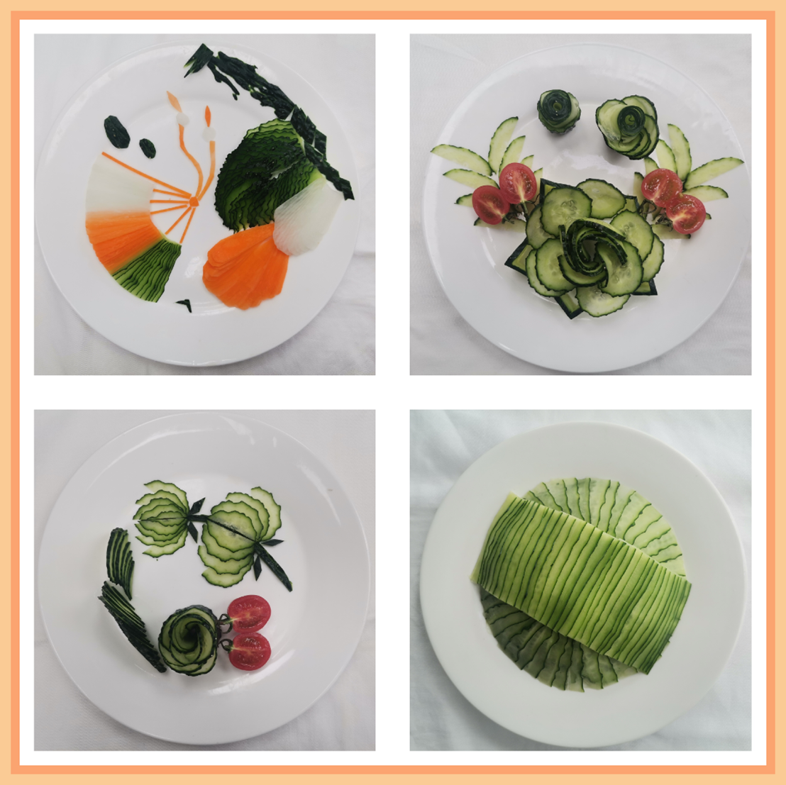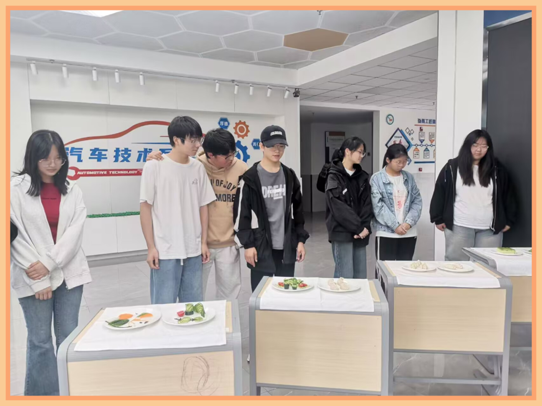 烹饪专业的学生们通过精湛的刀工、创意蔬菜拼盘和精美面点展示,展现了他们较高的专业素养。萝卜化作银丝纤毫毕现,黄瓜成片薄如蝉翼,整齐划一的刀工展示令围观师生叹为观止。色彩鲜艳的蔬菜被巧妙组合成栩栩如生的造型,既有艺术美感又充满健康理念。面点展示中,学生们制作了各式各样的中式面点,香气四溢,令人垂涎欲滴。