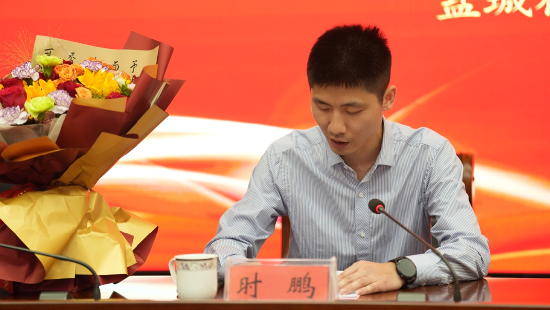 会议伊始,校工会主席周克银详细介绍了时鹏老师的先进事迹。时鹏老师从教12年来,始终坚守教学一线,以教师职业道德标准严格自律,以教好书育好人为职责,热爱教育事业,热爱教师职业,自觉贯彻党的教育方针,忠诚于教育事业,尽职尽责。从教以来一直担任一线的教学、实训指导及班主任工作。曾获得“事业单位工作人员记功”奖章、“盐城市优秀教育工作者”等称号。他指导学生参赛或自己参赛16次斩获全国、全省职业院校技能大赛金牌,其中2021-2023年连续3次蝉联全国职业院校技能大赛第一名,用行动诠释了新时代职业教育工作者的责任与担当。