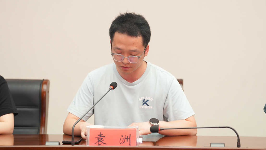 青年教师袁洲作为代表发言。他结合时鹏老师的榜样力量,要学其爱岗敬业的职业操守、学其精益求精的治学态度、学其爱生如子的教育情怀,并号召青年教师以劳模精神为灯塔,在育人实践中实现自我价值。