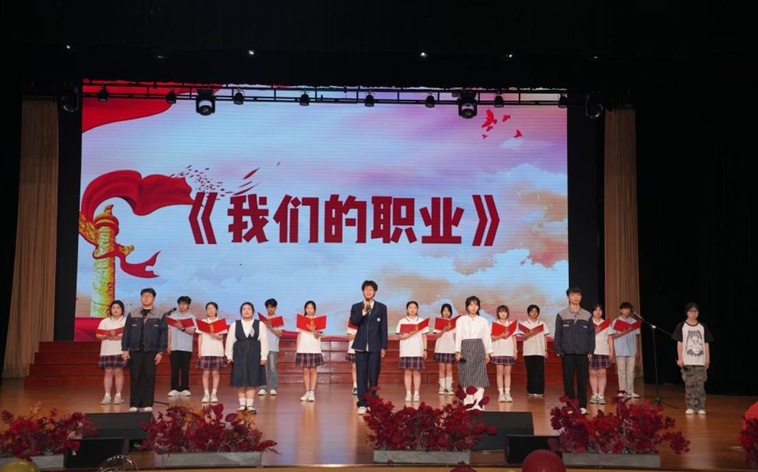 演出精彩纷呈,亮点频现。信息传媒系的啦啦操《CCA》以动感十足的编排和活力四射的表演,充分展现了职校学子的青春风采;校园之声播音社团的诗朗诵《我们的职业》声情并茂,用铿锵有力的语言诠释了"星河滚烫,山河远阔"的职业情怀,彰显平凡岗位的时代价值;汽车技术系的小品《总裁请就诊》以幽默诙谐的方式演绎当代生活,在欢声笑语中传递正能量;教官团队与智能制造系联袂献唱《歌唱祖国》,嘹亮的歌声饱含深情,赢得满堂喝彩;现代服务系的舞蹈《星星之火》以优美的舞姿诠释"星火虽微,可耀苍穹;少年志远,终撼山河"的深刻寓意;综合教育系的大合唱《放飞理想》将现场气氛推向顶点,激昂的歌声满载着对未来的美好憧憬,为展演画上圆满句号。