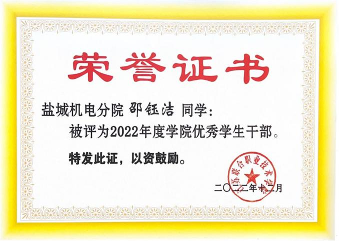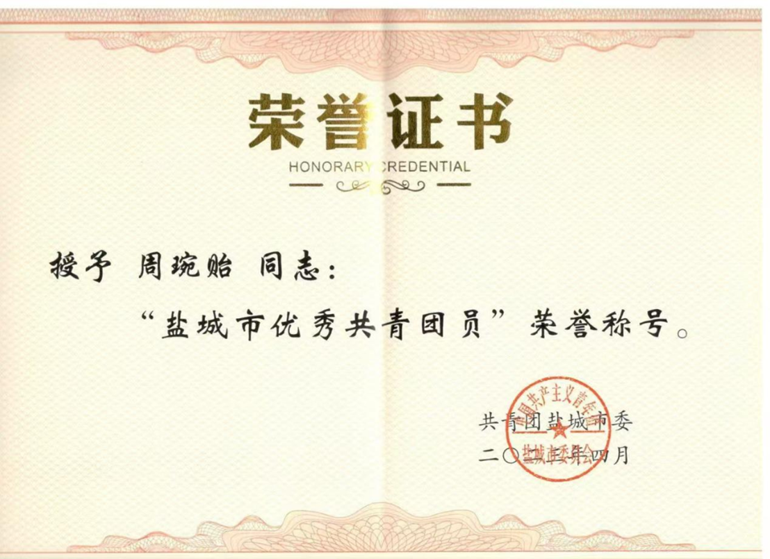 她多次获评“学院优秀学生干部”、“盐城市优秀学生干部”、校“优秀干部”。