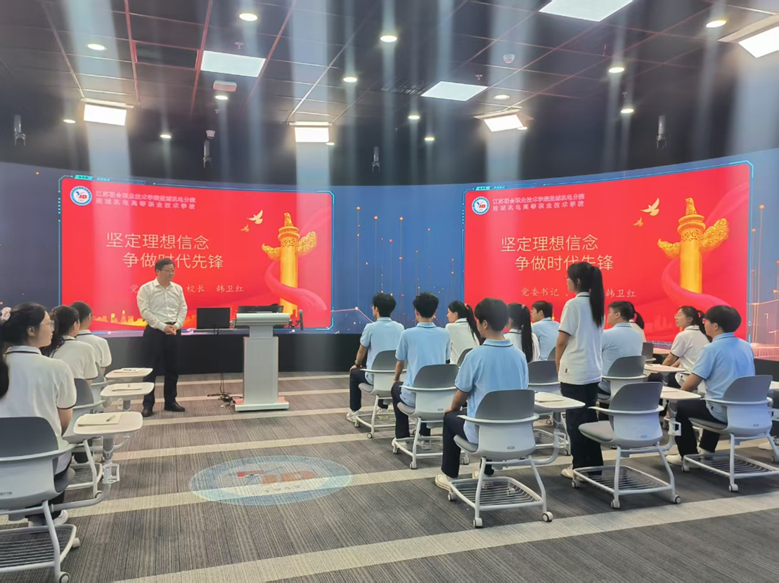 为深入贯彻落实习近平总书记关于思政课建设的重要指示精神,扎实推进新时代学校思政课高质量发展,6月12日上午,校党委书记、校长韩卫红以“坚定理想信念,争做时代先锋”为主题,在行健文化中心全景教学空间,为来自全校各系部的24名学生干部代表讲授了一堂立意深远、内涵丰富、催人奋进的思政课。