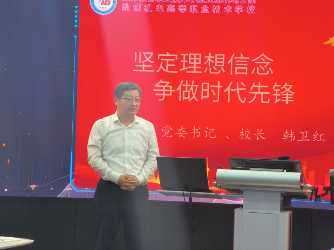 最后,韩卫红向学生提出三点殷切希望:一是以赤诚之心永葆政治本色,做听党话跟党走的先锋表率。 以如炬信仰照亮青春征程,将对党忠诚融入血脉,在思想淬炼中把稳人生航向,始终以先锋姿态践行“请党放心”的铮铮誓言。二是以工匠精神锤炼过硬本领,做堪当大任的新时代学生干部。 以 “精雕细琢” 的执着钻研专业知识,以“知行合一”的实践磨砺担当能力,靠真才实学扛起民族复兴重任,在本领锻造中成长为能挑大梁的骨干力量。三是以务实作风践行服务宗旨,让初心使命在青春征程绚丽绽放。 把同学需求作为行动的“坐标原点”,以热忱之心帮助同学解难题、做好事,在服务奉献中诠释初心,让青春在践行使命中焕发夺目光彩。