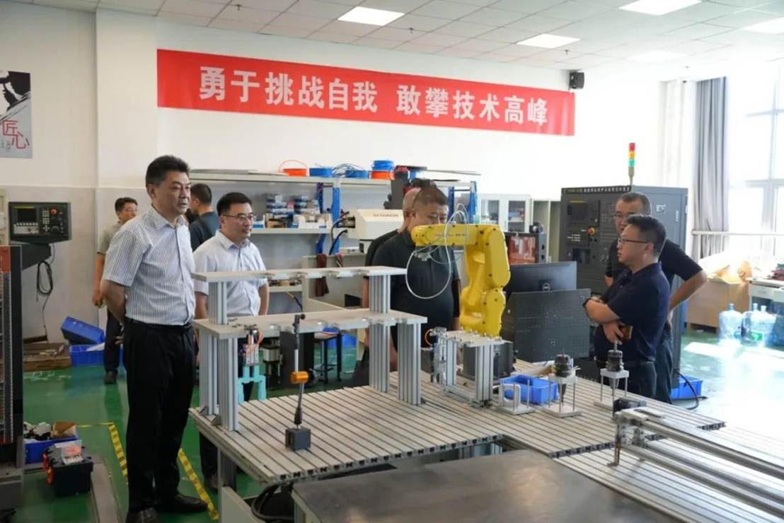 在我校副校长王著的陪同下,韩春宏一行参观了低空经济产业学院、机器人专业实训区、通用机电实训区、柔性生产线车间以及“邂逅光影”电影机馆等多个实训基地。考察团对我校先进的设施设备、完善的实践教学体系表现出浓厚兴趣,并详细了解学生实践课程安排、技能考核方式及校企合作的具体模式。他们高度认可我校在实践教学方面的成果,表示许多经验值得借鉴。