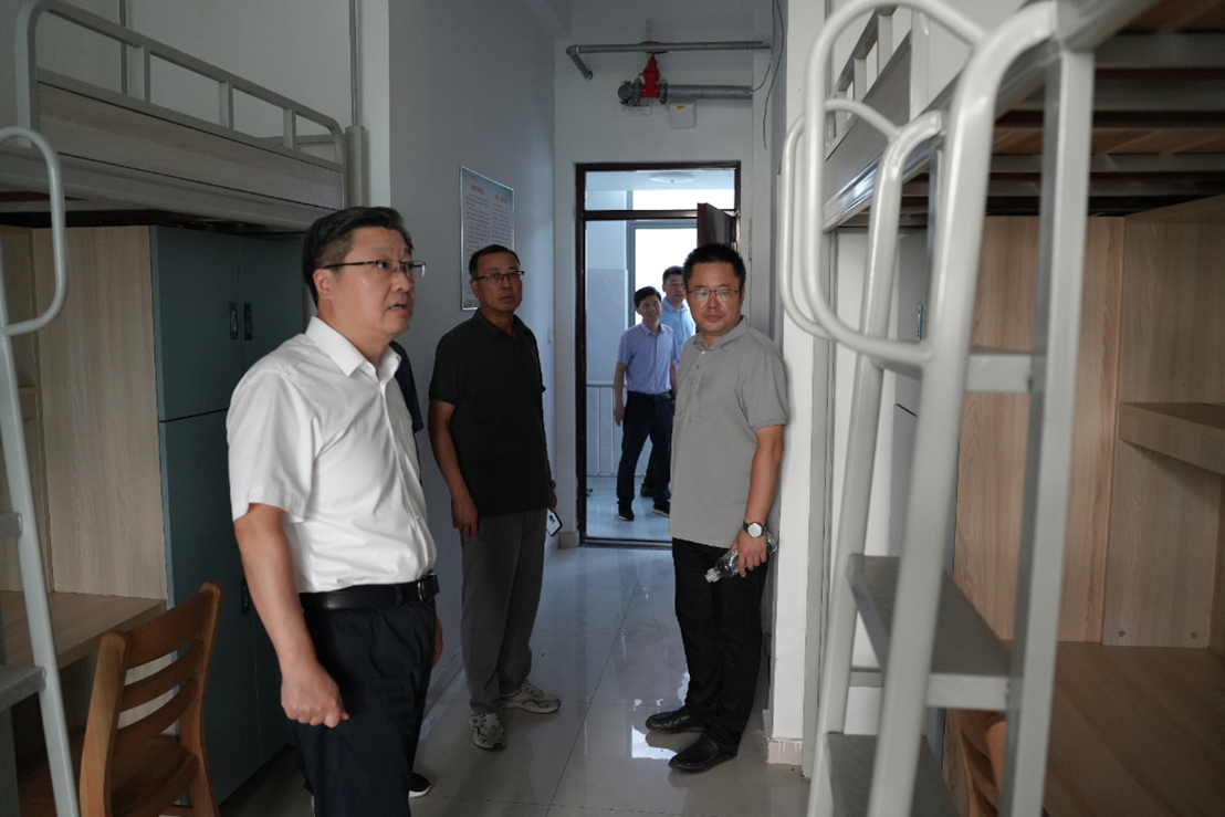 在学生宿舍区,校领导深入学生宿舍内部,细致查看了住宿环境卫生、水电设施安全、床铺桌椅的稳固性、空调、浴室等设备的运行情况以及楼道消防设施配置。他们与宿管员亲切交流,了解宿舍分配、迎新准备及日常管理预案。校领导特别关心新生住宿的适应问题,要求学工部门和各系部要加强对学生的生活指导和人文关怀,营造温馨、整洁、安全的住宿环境,让学生感受到家一般的温暖。