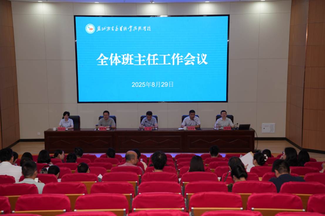 为全面部署新学期德育工作,进一步提升班主任队伍育人实效,8 月 29 日上午,我校 2025 年秋学期第一次全体班主任工作会议在行健报告厅隆重举行。学校副校长王著,学生工作处副处长张良鹏、崔益银,各系德育主任及全体班主任齐聚一堂,共商新学期德育工作大计。会议由学生工作处处长朱晨晖主持。