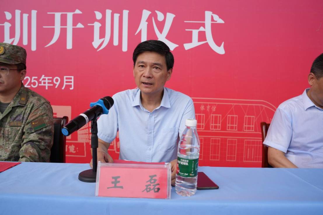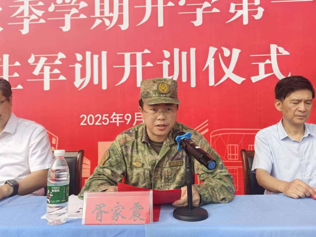 在军训开训仪式上,韩卫红向承训教官表示衷心感谢,并对2025级参训新生提出三点希望:一是端正态度,迎难而上,以昂扬斗志投身军事训练;二是严明纪律,团结协作,以集体荣誉凝聚团队力量;三是科学参训,确保安全,以健康体魄保障训练成效。