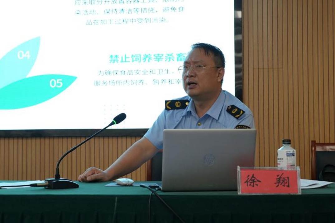 培训过程中,徐翔结合最新的《中华人民共和国食品安全法》《学校食品安全与营养健康管理规定》等法律法规,围绕校园食堂食品安全管理的关键环节展开详细讲解。内容涵盖了从业人员个人卫生规范(如健康证办理与年检、手部清洁消毒、着装要求等)、食品采购与储存安全(索证索票、食材查验、分类存放、保质期管理)、食品加工制作安全(生熟分开、烹饪温度控制、交叉污染防范)、餐用具清洗消毒流程、食品留样制度(留样时间、数量、记录要求)以及食品安全突发事件应急处置方法等多个方面。为增强培训的实用性和针对性,他还结合近年来国内校园食品安全典型案例,深入剖析了食品安全事故发生的原因、危害及防范措施,让在场从业人员深刻认识到食品安全管理的重要性和紧迫性。