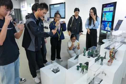 现场,同学们近距离观摩了3D真人手办扫描的全流程,深入理解从扫描采集、三维建模、骨骼绑定到最终渲染输出的完整技术链条。虚拟演播厅、智慧广电等实景应用展示,以及动作捕捉技术在虚拟角色驱动中的生动运用,进一步激发了大家的专业兴趣与探索热情。基地先进的硬件设施、严谨的创作氛围与工作人员的专业素养,均给师生留下深刻印象。大家纷纷驻足于VR产品体验区与智慧文旅数字人“盐梦梦”展台,积极提问、交流互动,将课堂所学理论在真实产业场景中加以印证与深化。