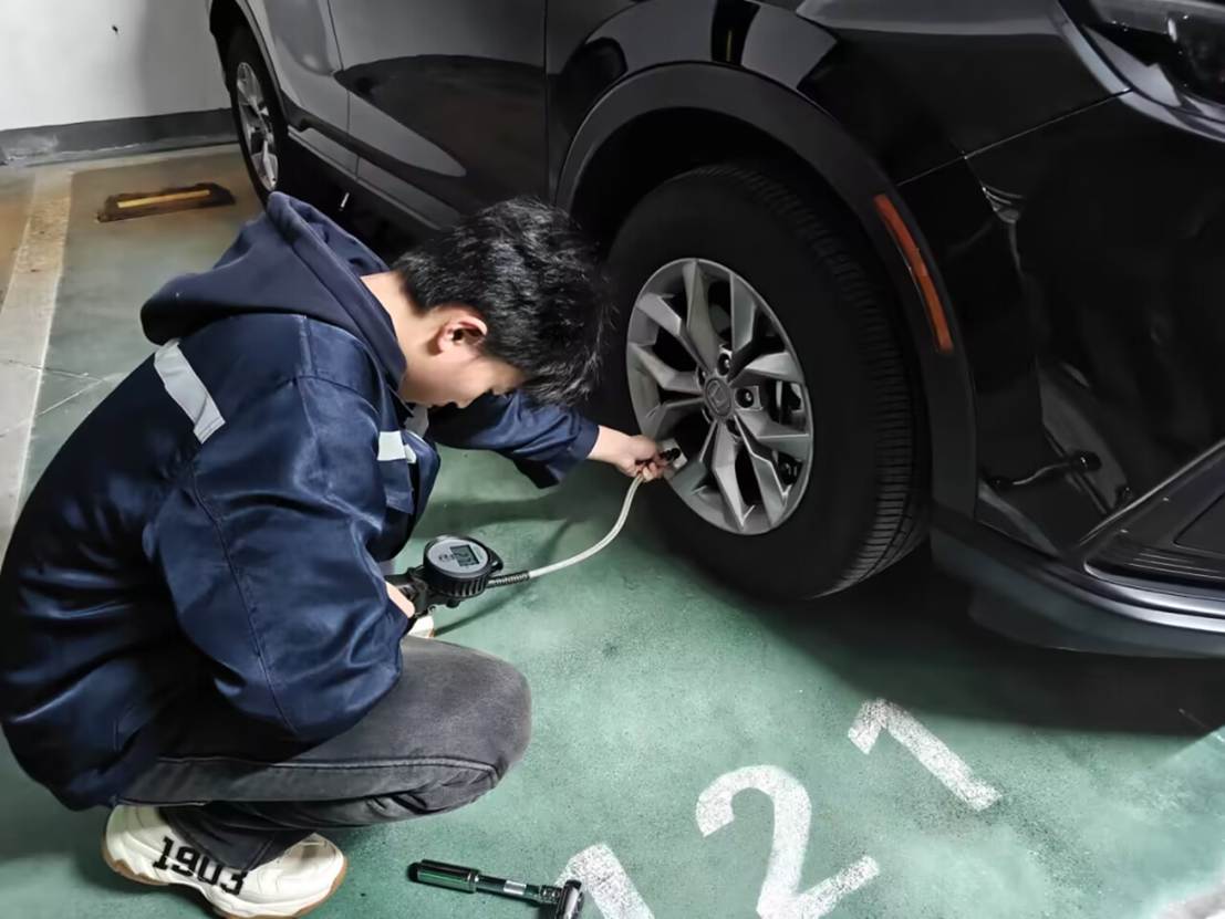 近日,我校汽车技术系“飞驰汽车保养社团”接到洪老师的紧急求助——其车辆胎压异常报警。社团成员严冬玮、徐睿迅速响应、赶往现场。经专业检测,确认车辆右后轮扎入螺钉导致快速漏气。两人随即依照标准流程分工协作,高效完成备胎更换,并在操作后细心标注损坏部位、详细说明备胎使用注意事项。整个过程规范有序、态度认真,不仅及时化解了燃眉之急,更为洪老师节省了约八百元的维修费用,展现了扎实的专业技能与良好的服务意识。