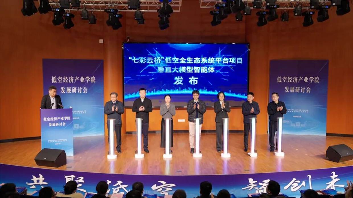 研讨会上还举行了低空经济产业学院人才实训基地揭牌仪式,标志着学院在实践教学与技能培养方面迈出了更为坚实的一步。同时,“七彩云桥”低空全生态系统平台项目垂直大模型智能体正式发布,相关负责人对产品内容进行了详细介绍,展现了学院在技术创新与产业赋能方面的最新突破。